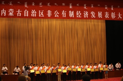 2013年6月28日,自治區黨委、政府在呼和浩特召開非公有制經濟表彰大會,自治區黨委書記王君、自治區主席巴特爾,中央統戰部副部長,全國工商聯黨組書記、常務副主席全哲洙出席大會并講話,各盟市主要負責人參加了會議。